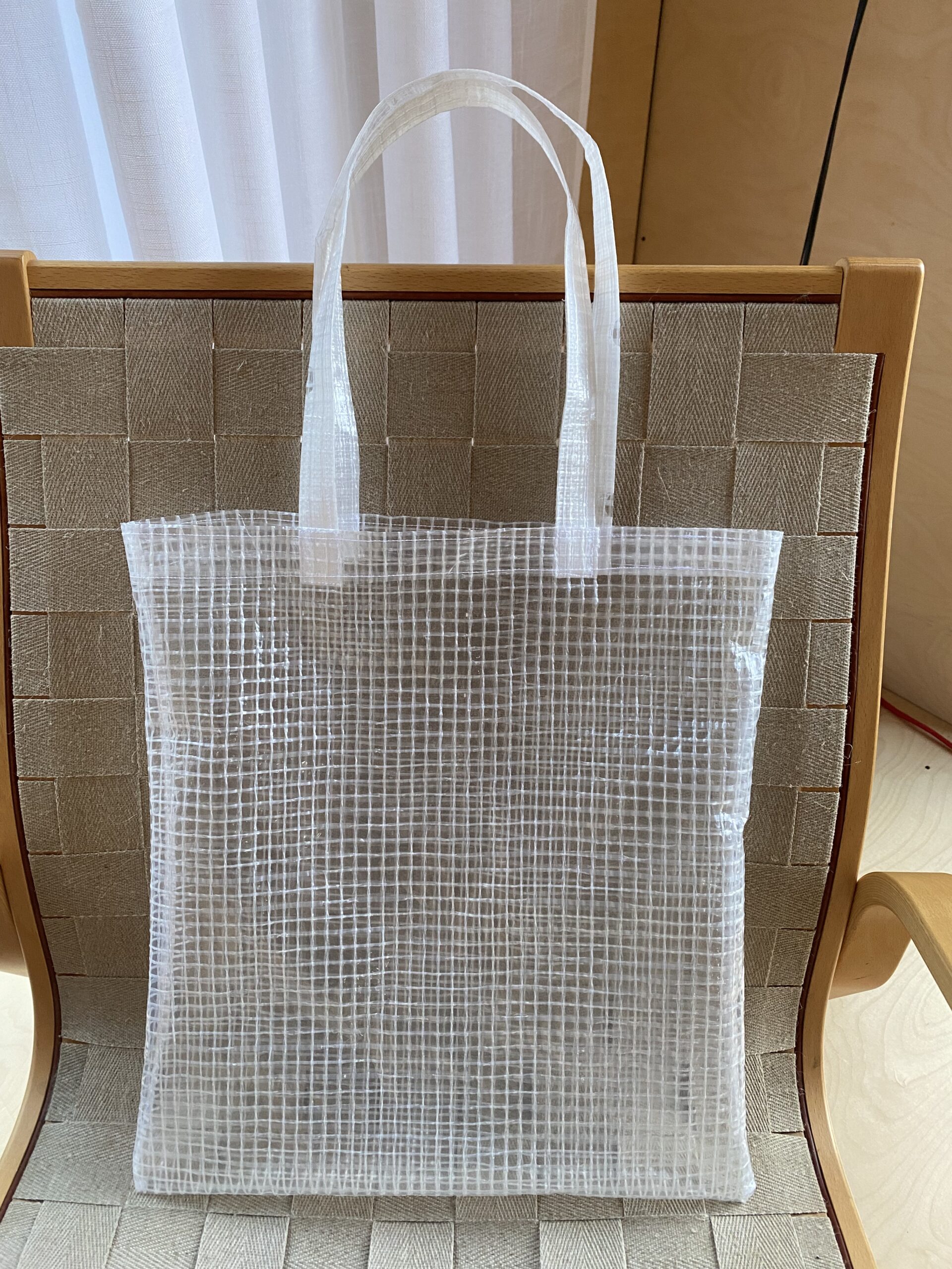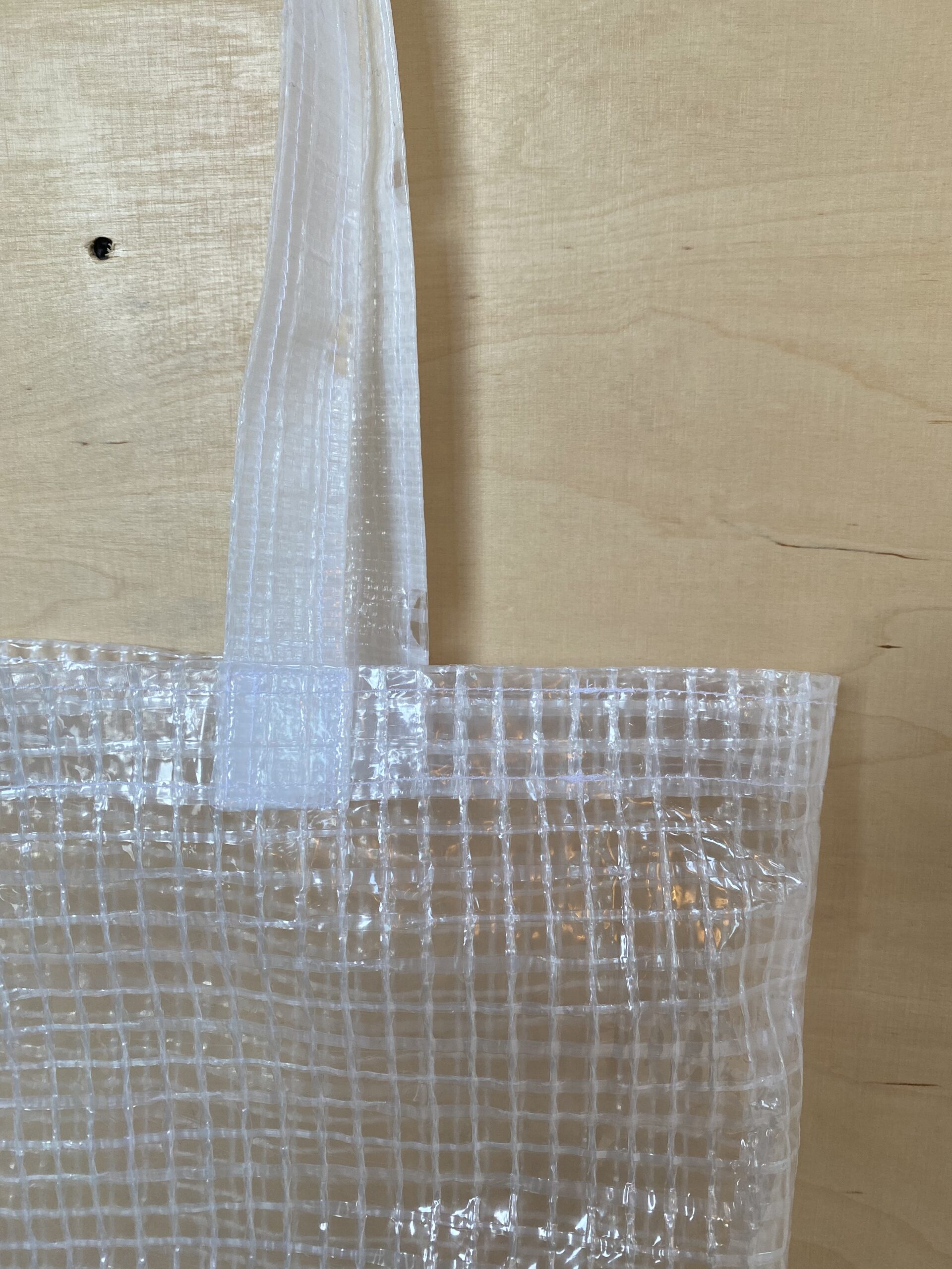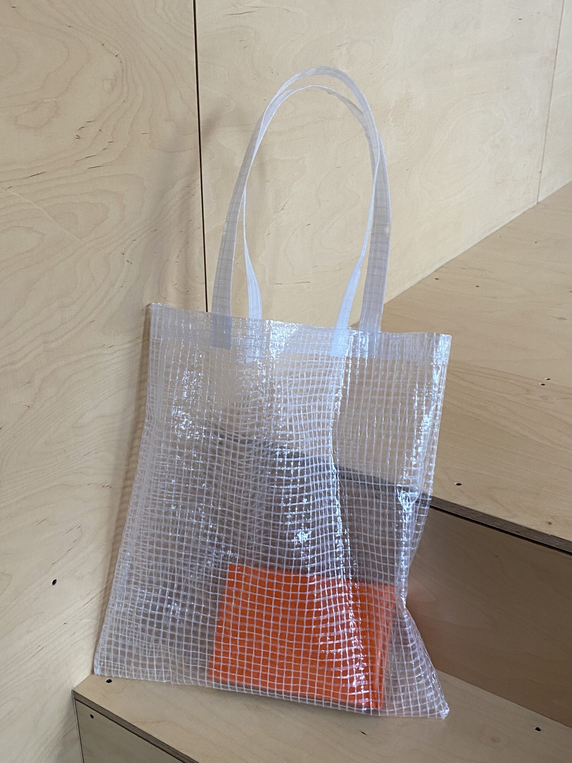Taske lavet af overskydende stilladsplast. Alle er håndsyede, og derfor kan målene variere. Højde: 42 cm Bredde: 36 cm